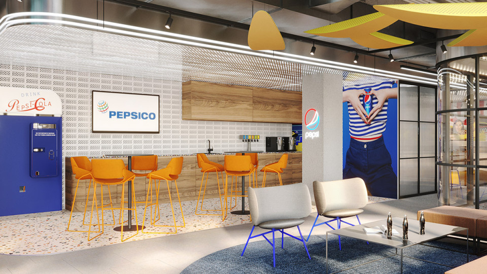 The Pepsi Headquarters in Warsaw was one of our longest-running projects and it’s been over 30 renderings created during the whole time. Each zone in each part of the building needed to be rendered and presented as a photorealistic marketing image.