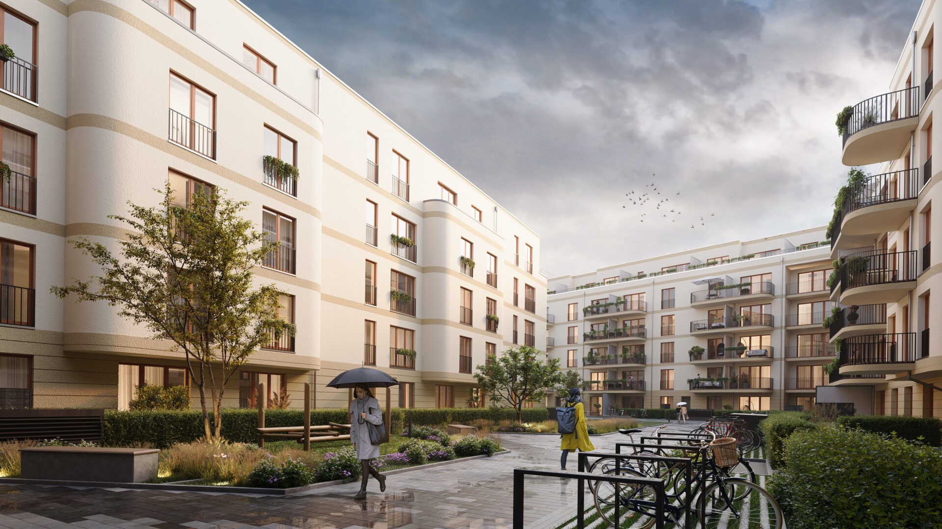 Our favorite projects are those where we are granted artistic freedom in shaping the visualization’s atmosphere. This includes choosing the time of day, season, and even weather conditions. After all, buildings don't only exist during perfectly sunny summer days with clear blue skies, right? We were fortunate to have this flexibility in our collaboration with WvM Immobilien: